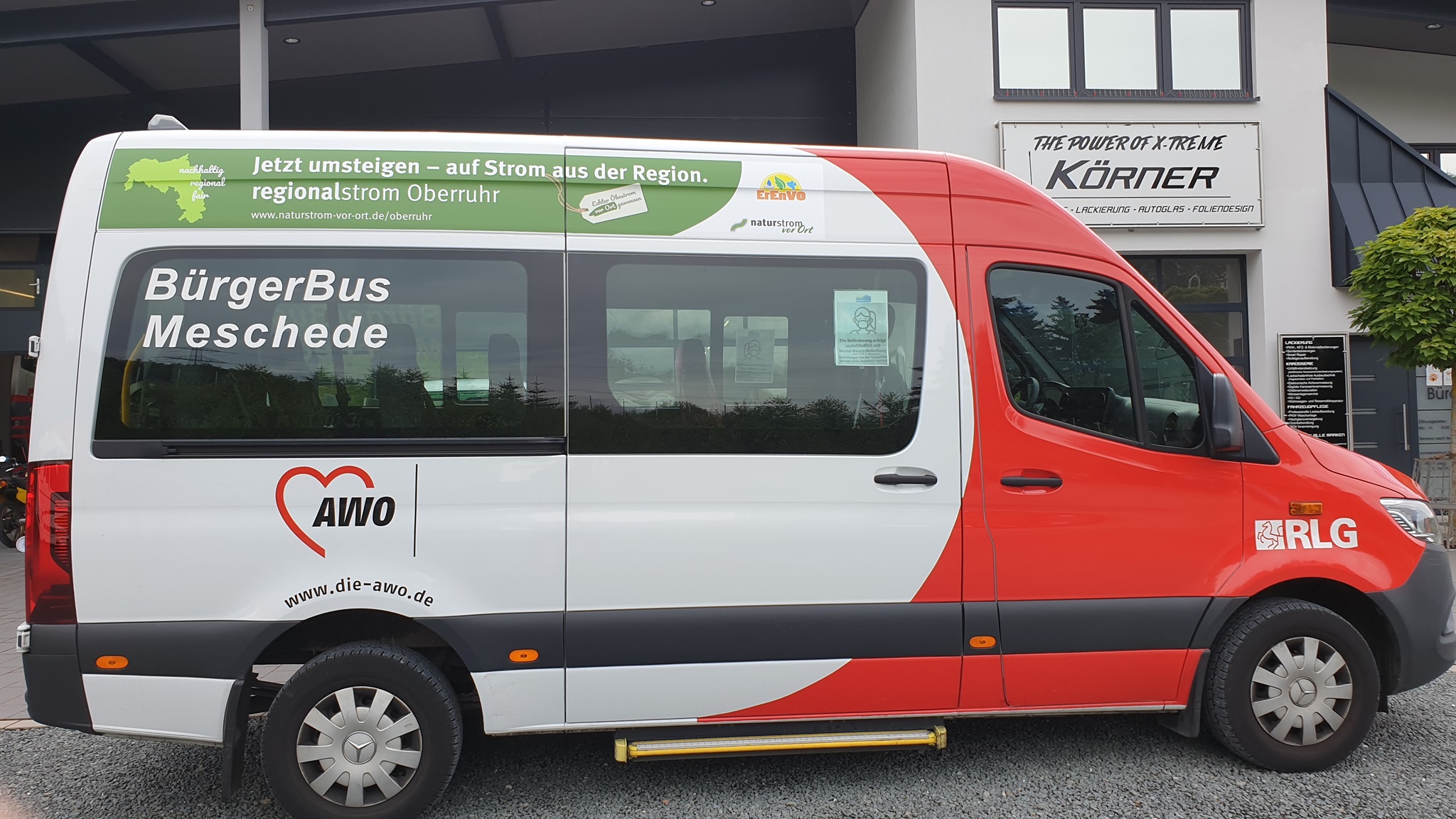 Mit dem Bürgerbus Meschede wird seit Anfang August 2021 auch der „regionalstrom Oberruhr“ beworben.